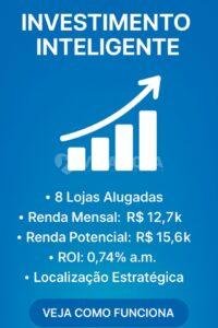 – Renda Mensal Garantida, Atualmente as 8 Lojas – R$ 12.743,00/Mês, com Potencial (10 lojas) – R$ 15.643,00/Mês;